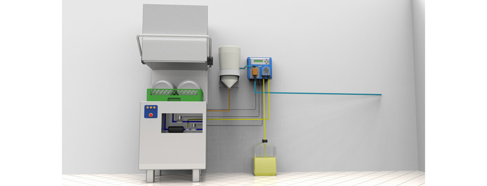Desenhada especificamente para a aplicação de detergente e abrilhantador com p tubo peristáltico adequado para cada um dos produtos e o kit de acessórios para a sua instalação.