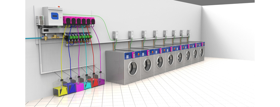 È um sistema centralizado de dosificação que permite adicionar os produtos químicos de forma automática até 8 maquinas.